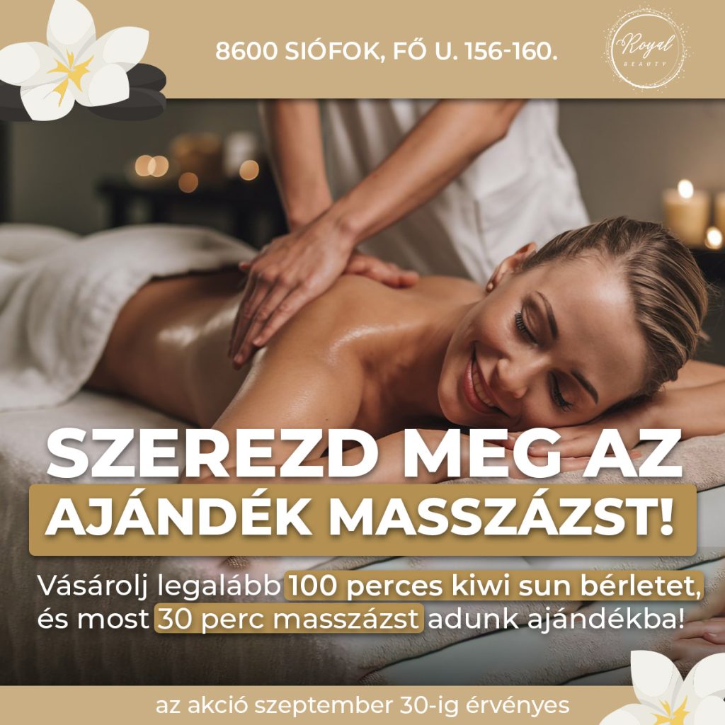 Siófok szívében, a főtér szomszédságában várunk, hogy megtapasztald a tökéletes kikapcsolódást! Szalonunkban a masszázsok széles palettáját kínáljuk: válaszd a klasszikus svéd masszázst, a frissítő, aromaterápiás vagy arc kezeléseinket. Ha mélyebb lazításra van szükséged, próbáld ki nyirokmasszázsunkat, amely támogatja tested természetes regenerációját. Tapasztalt masszőreink szükség esetén köpölyözéssel is segítenek a letapadt izmok fellazításában. Foglalj időpontot online vagy recepciós kollégáinknál, töltsd fel tested és lelked, és hagyd, hogy a Royal Beauty kényeztessen téged!